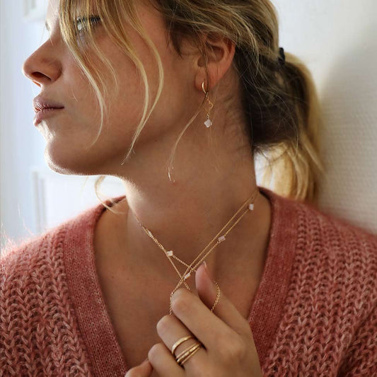 Boucles d'oreilles chaînette Romane nacre trèfle