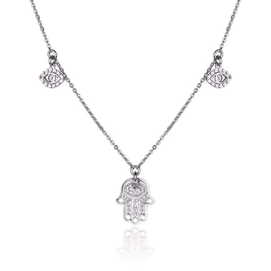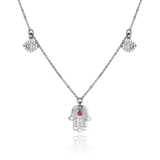 Collier trois pendentifs oeil main de fatma cristal rouge