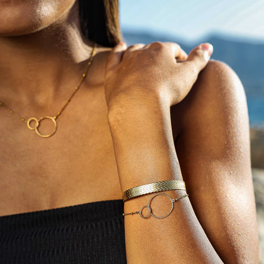 Bracelet mi-chaine mi-jonc pierre semi-précieuse